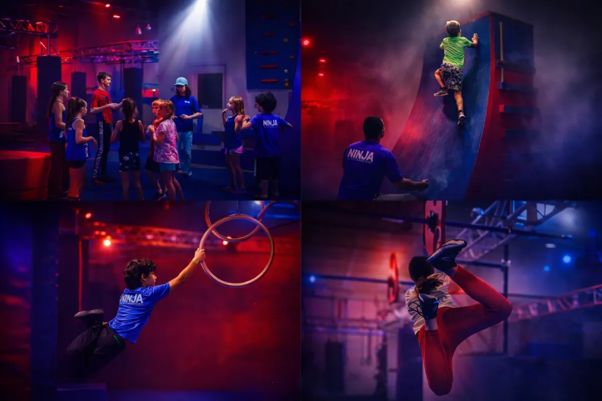Each athlete gets their moment to feel like they’re on a real competition course — running obstacles under dramatic lighting with all eyes on them. It’s high-energy, high-excitement, and makes every kid feel like a total ninja rockstar.